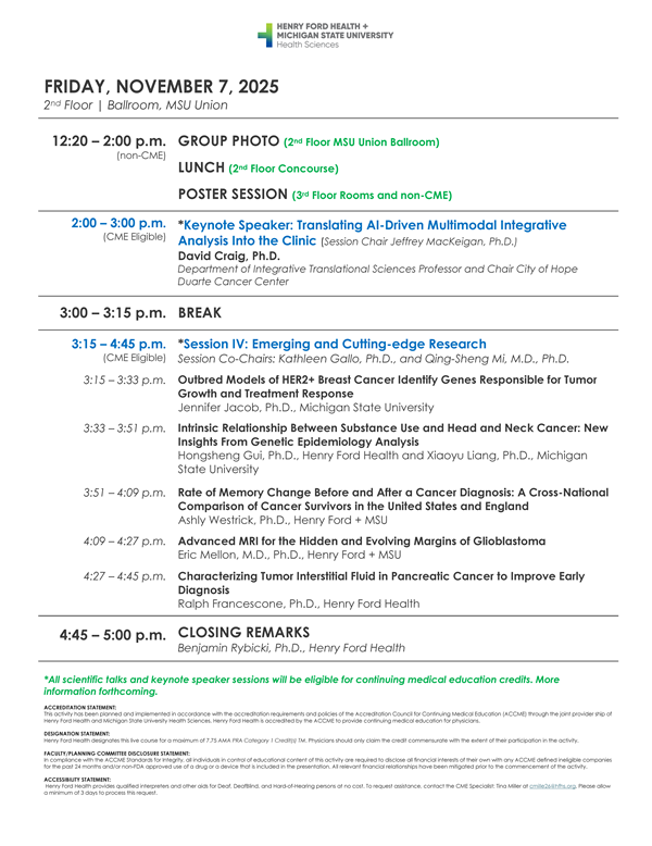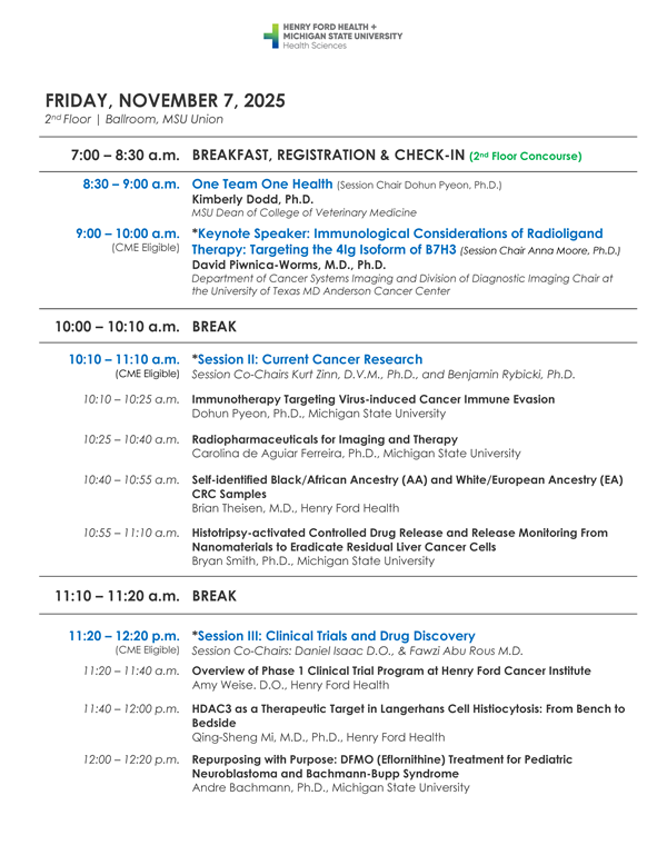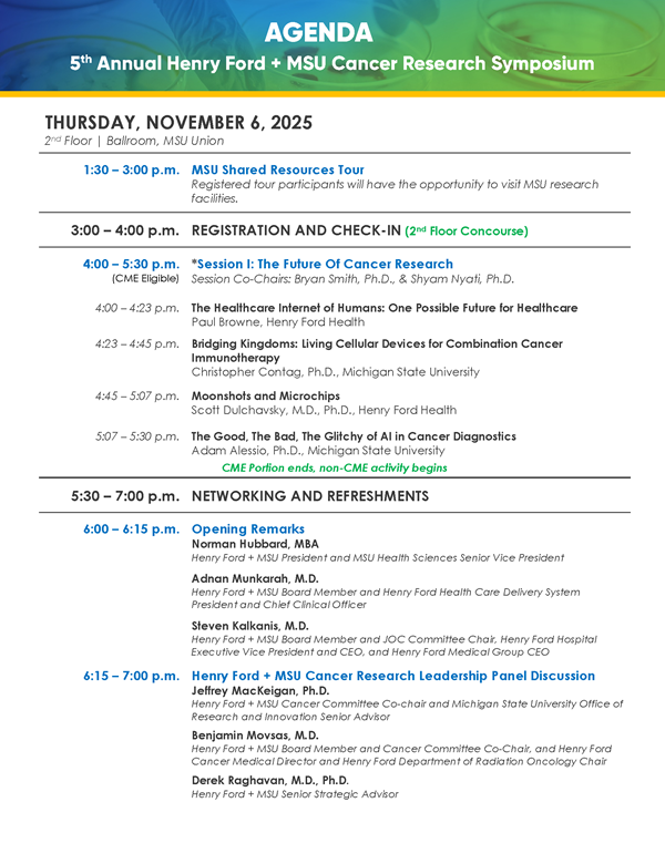 5th Annual Henry Ford + MSU Cancer Research Symposium Agenda